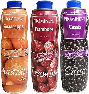 Prominent Siroop TESTPAKET Sinaasappel, Aardbei und Cassis (je 1x750ml Getränke Sirup Orange, Erdbeere und schwarze Johannisbeere)
