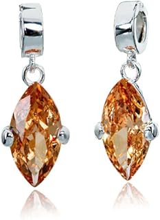 MATERIA 925 Silber Beads Zirkonia Anhänger orange braun - Silber Beads Tropfen Dangle Element orange #1664