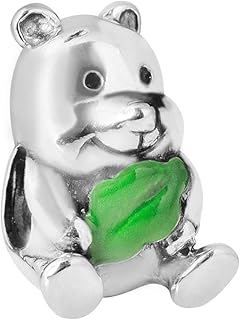 MATERIA Schmuck 925 Silber Beads Bär mit Emaille Blatt - Antik Silber Bead Charm Teddybär für European Beads Armband #178