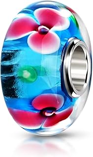 MATERIA Schmuck 925 Silber Beads Glas Charms mit Glitzerfolie - Muranoglas Beads Perle türkis pink für Beads Armband #1027