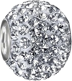 MATERIA XXL Silber Beads weiß Strass 12x16mm - 925 Silber Beads Kristall Kettenanhänger Kugel weiß #1098