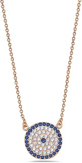 Damen-Halskette mit Anhänger Sterling-Silber 925 rosegoldfarbene Zirkonia Design Evil Eye Hamsa Weiß Blau