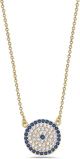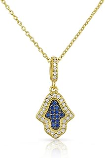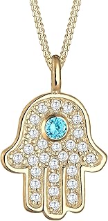 Damen-Halskette mit Anhänger Sterling-Silber 925 Gelbgold-Ton Böser Blick Hamsa Weiß Blau Zirkonia