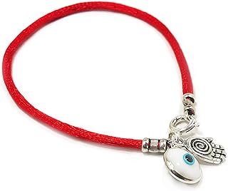 3-in-1 Charm-Armband mit Anhänger "Böser Blick" für Glück mit Silber Hamsa Hand der Fatima Schutz-Anhänger auf rotem Glücksbringer – stilvolles Armband für Frauen, Mutter, Ehefrau, Freundin oder BFF