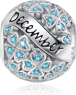Geburtstagsstein Damen Charm Bead 925 Sterling Silber Geburtstag Charm Anhänger mit Cubic Zirkonia fit Armband und Halskette Geburtstagsgeschenk