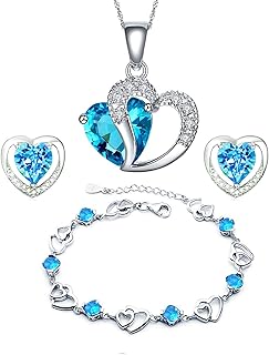 Sterling Silber Kristall Amethyst blau Herz Form Cubic Zirkonia Set Ohrring und Anhänger Halskette/Armband Silber (F1682)