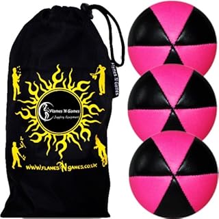 3X Flames N Games Astrix UV Thud Jonglierbälle 3er Set (Schwarz/UV Rosa) Profi Beanbag Bälle aus Glattleder (Leather) + Reisetasche! Ideal für Anfänger und Profis!