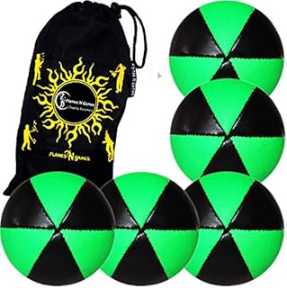 5X Flames N Games Astrix UV Thud Jonglierbälle 5er Set (Schwarz/UV Grun) Profi Beanbag Bälle aus Glattleder (Leather) + Reisetasche! Ideal für Anfänger und Profis!
