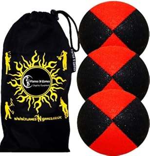 Flames N Games ® Thud Jonglierbälle 3er Set - Profi Beanbag Bälle aus Velours + MR Babache Bälle-Booklet (in Deutsch) + Reisetasche! Komplett-Set Ideal Für Anfänger und Auch Für Profis! (Schwarz/Rot)