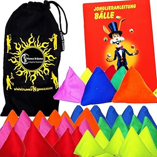 Flames 'N Games 5X Tri-It Jonglierbälle 5er Set, Pyramid Säcke, Sitzsäcke für Kinder & Erwachsene, + MR Babache Bälle-Booklet (auf Deutsch) + Stoff Reisetasche! (Mix)