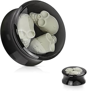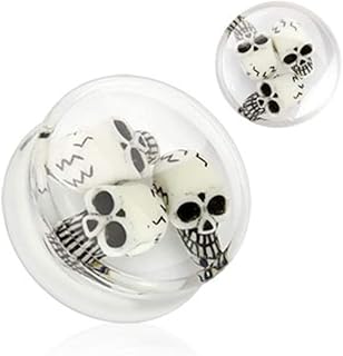 Unisex Flesh Tunnel Plug Totenkopf Skull Piercing Double Flared Clear Weiß 3D Inlay
