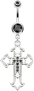 | Bauchnabelpiercing Edelstahl Chirurgenstahl 316L Zirkonia Anhänger Doppel Kreuz Schwarz
