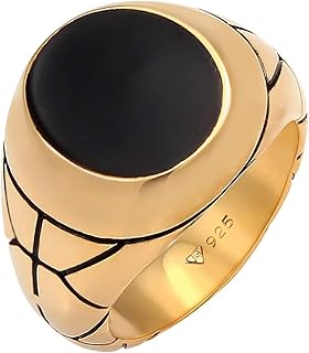 Siegelring Herrenring oval Emaille schwarz, Ring massiv (13 mm) in 925 Sterling Silber vergoldet, Silberring golden schwarz oxidiert, Ring für Männer in der Ringgröße 54 – 66, 0607822220
