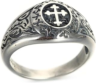 Herren-Ring Rosenkranz-Ring Herrenring, Edelstahl Ring Edelstahlring Bandring Schwarz Silber Gold Daumenring Herrenringe Siegel Kreuz Kruzifix Jesus Männer Herren-Accessoires