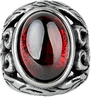 Ring Männer Silber Ring Silber Zirkonia Schwarz Silber Bar Punk Muster Mit Oval Stein Rot Rapper Rot Zirkonia Gothic Retro Vintage Hochzeit Ring Für Sohn