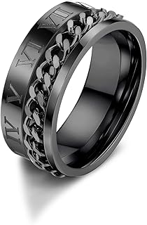 Edelstahl Römischen Ziffern Ring für Herren Damen Vintage Curb Gliederkette Ring Punk Biker Gothic Ring Schwarz Silber, 8mm Breite