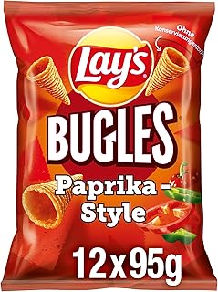 Lay's Bugles Paprika – Herzhafter Mais-Snack mit Paprika-Geschmack – 12 x 95g