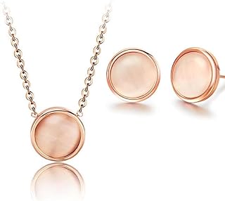 Edelstahl Damen Schmuckset "Perle" Bohne Halskette mit Anhänger & Ohrringe in Roségold inkl. Schmuckbeutel
