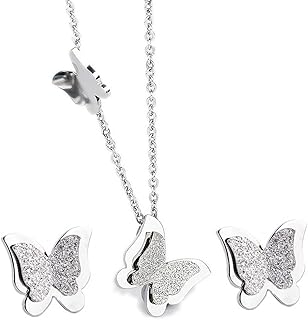 Edelstahl Damen Schmuckset "Schmetterling" Halskette mit Anhänger & Ohrringe in Silber inkl. Schmuckbeutel