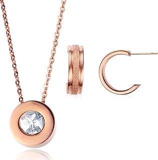 Edelstahl Damen Schmuckset "Circle of Love" Halskette mit Anhänger & Ohrringe in Roségold mit Zirkonia Steinchen besetzt inkl. Schmuckbeutel