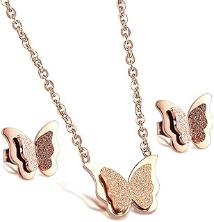 Edelstahl Damen Schmuckset Schmetterling Halskette mit Anhänger & Ohrringe in Roségold inkl. Geschenkverpackung
