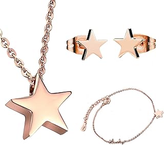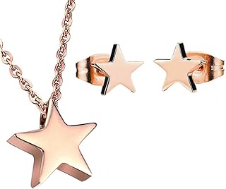 Edelstahl Damen Schmuckset "Star" Halskette mit Anhänger & Ohrringe in Roségold inkl. Schmuckbeutel