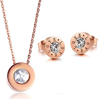 Edelstahl Damen Schmuckset "Love" Halskette mit Anhänger & Ohrringe in Roségold mit Zirkonia Steinchen besetzt inkl. Schmuckbeutel