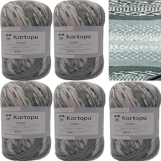 5x100gr Häkelgarn-Strickgarn – Verlaufsgarn, Effektgarn mit modischem Norweger Muster Jaquardmuster-kuschlige weiche Wolle-Effekte direkt aus dem Knaul- Fjord 165m LL /100gr-ideale Babywolle- (4005)