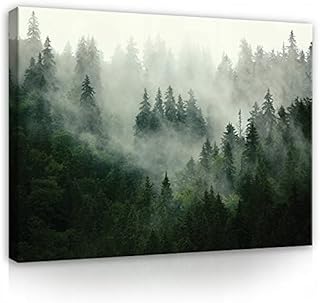 Bilder Wald Nebel Natur Modern Schlafzimmer Querformat Leinwandbilder Wandbild Kunstdruck Wandbilder Wand Bild auf Leinwand UV-Beständig Aufhängefertig (PP13026, O20 (120 x 80 cm))