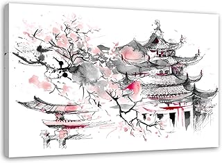 Feeby. Wandbild - 1 Teilig - 40x60 cm, Leinwand Bild Leinwandbilder Bilder Wandbilder Kunstdruck, Japan, Architektur, GRAU