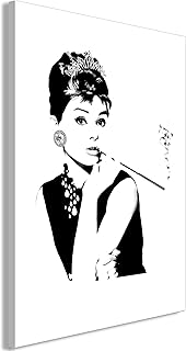 decomonkey Bilder Audrey Hepburn 80x120 cm 1 Teilig Leinwandbilder Bild auf Leinwand Vlies Wandbild Kunstdruck Wanddeko Wand Wohnzimmer Wanddekoration Deko Modern schwarz weiß