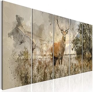decomonkey Bilder Natur Hirsch 200x80 cm 5 Teilig Leinwandbilder Bild auf Leinwand Wandbild Kunstdruck Wanddeko Wand Wohnzimmer Wanddekoration Deko Baum Landschaft Tiere Natur