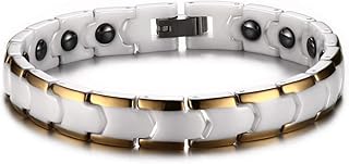 Damen-Armband aus Keramik Stahl mit Hämatit, magnetisch, goldfarben, klassisch, Handkette, Schmuck, Geschenk, Farbe: Weiß / goldfarben