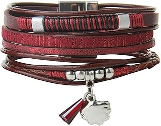 CUSROS Frauen Dual Layer Kunstleder Seil Armreif Keramik Perlen Armband Frauen Mädchen Schmuck Geschenk rot Einheitsgröße