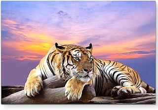 Paul Sinus Art Leinwandbilder | Bilder Leinwand 120x80cm liegender Tiger mit Sonnenuntergang im Hintergrund