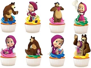 30 x Kuchen-, Backwarendekoration zum Aufstellen aus Esspapier mit Motiv „Mascha und der Bär“