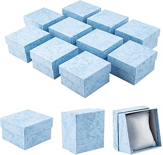 nbeads 10 Stück Papier Karton Schmuckkästchen, Geschenkbox mit Schwamm Pad Innen Für Uhr Armband Weihnachten, 8.9×8.1×5.4cm, Himmelblau