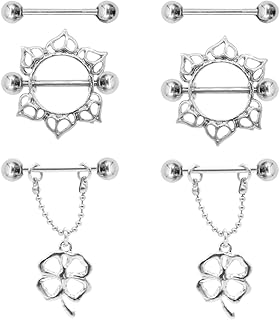 14G Brustwarzenpiercing Chirurgenstahl Damen Blume Barbell Gerade Anhänger Vierblättriges Kleeblatt Blütenblatt Herz Brustwarze Piercing Schmuck