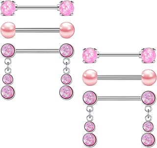 14G Brustwarzenpiercing Chirurgenstahl Opal Stein Herz Barbell Damen Brustwarze Piercing Schmuck 8 Stück Rosegold Silber Farbe
