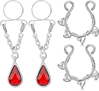 2 Paar Fake Brustwarzenpiercing Nippelring Chirurgenstahl Non Piercing Brustwarzen Ring Schmuck mit Anhänger
