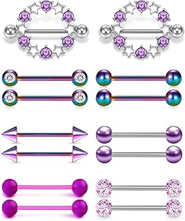 4-12 Paar Brustwarzenpiercing Edelstahl 14G 16mm Barbells Nippelpiercing Brustpiercing Piercing Brustwarze Schmuck Set