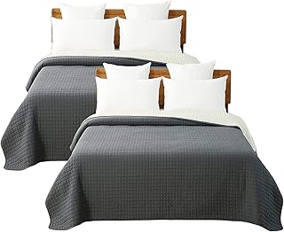 WOLTU BWP5012gr-2, 2er Set Tagesdecke Bettüberwurf Microfaser Flauschige Kuscheldecke mit Cashmere Feeling, Steppdecke Kariert Wohndecke Doppelbett unterfüttert und gesteppt, 150x200cm, Dunkelgrau