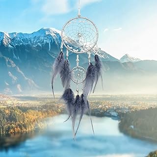 Traumfänger, Boho Handgemachte Dreamcatcher mit Grau Federn, Federn Dream Catchers Mädchen Wandbehang Ornament für Schlafzimmer Baby Shower Auto Dekoration Hochzeit Geschenk