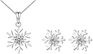 Silber Damen Schmuck Set, 925 Sterling Silber Schneeflocke Halskette Ohrringe Set, 10mm Ohrstecker Ohrringe mit AAAAA Weiß Zirkonia, Geschenk zum Weihnachten für Mutter Frau Freundin