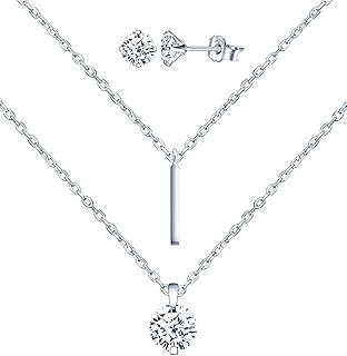 Damen Schmuckset Halskette mit Zirkonia Anhänger & Damen Ohrstecker Ohrringe aus 925 Sterling Silber für Frau Mädchen