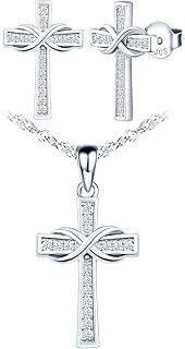 Halskette Damen Kreuz in 925 Sterling Silber Damen Kette Religion Unendlichkeit Anhänger Zirkonia Damen Ohrstecker Ohrringe Set für Damen