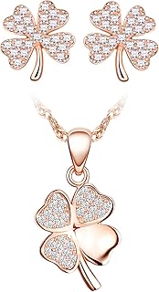 Damen Schmuckset Halskette Ohrringe Set Kleeblatt Kette Ohrstecker in 925 Sterling Silber Zirkonia