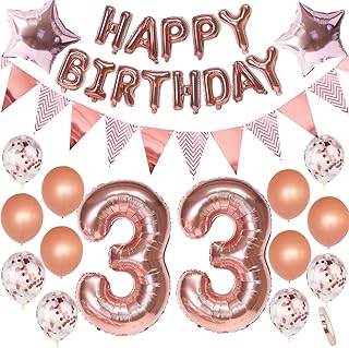 33. Geburtstag Dekoration Frau Rosegold 33th Geburtstag Party Deko Set,geburtstag deko frauen 33 jahre,33 geburtstag frau deko 33 geburtstag Geschenk frau damen Riesen Folienballon Zahl 33 Luftballon