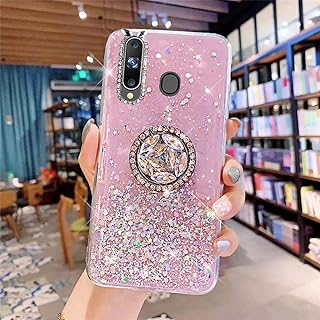 Uposao Kompatibel mit Samsung Galaxy A20S Hülle Glitzer Silikon Handyhülle mit Ring Halter Ständer Schutzhülle für Mädchen Glänzend Bling Strass Diamant Transparent TPU Handyhülle,Rosa