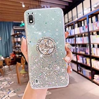 Uposao Kompatibel mit Samsung Galaxy A10 Hülle Glitzer Silikon Handyhülle mit Ring Halter Ständer Schutzhülle für Mädchen Glänzend Bling Strass Diamant Transparent TPU Handyhülle,Grün